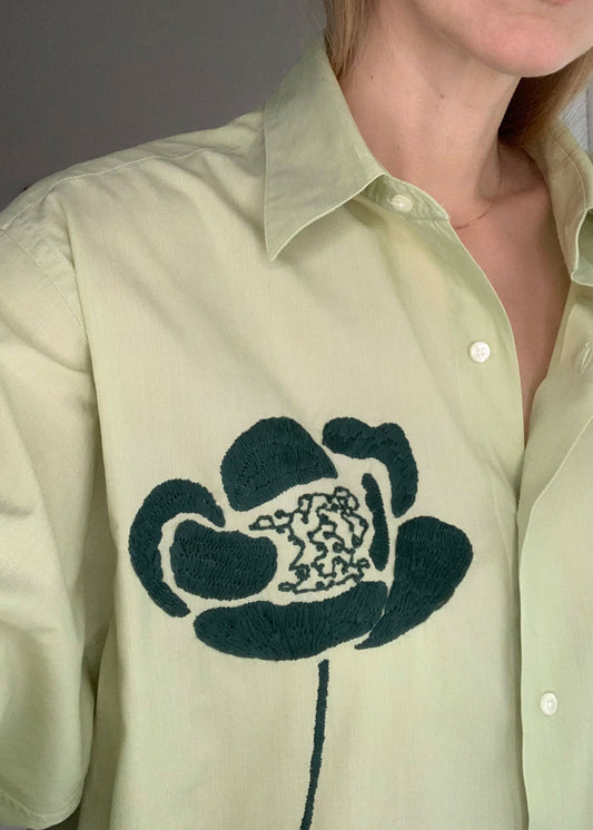 Vanilla Silk Top with Vintage Rose Quartz Flowers